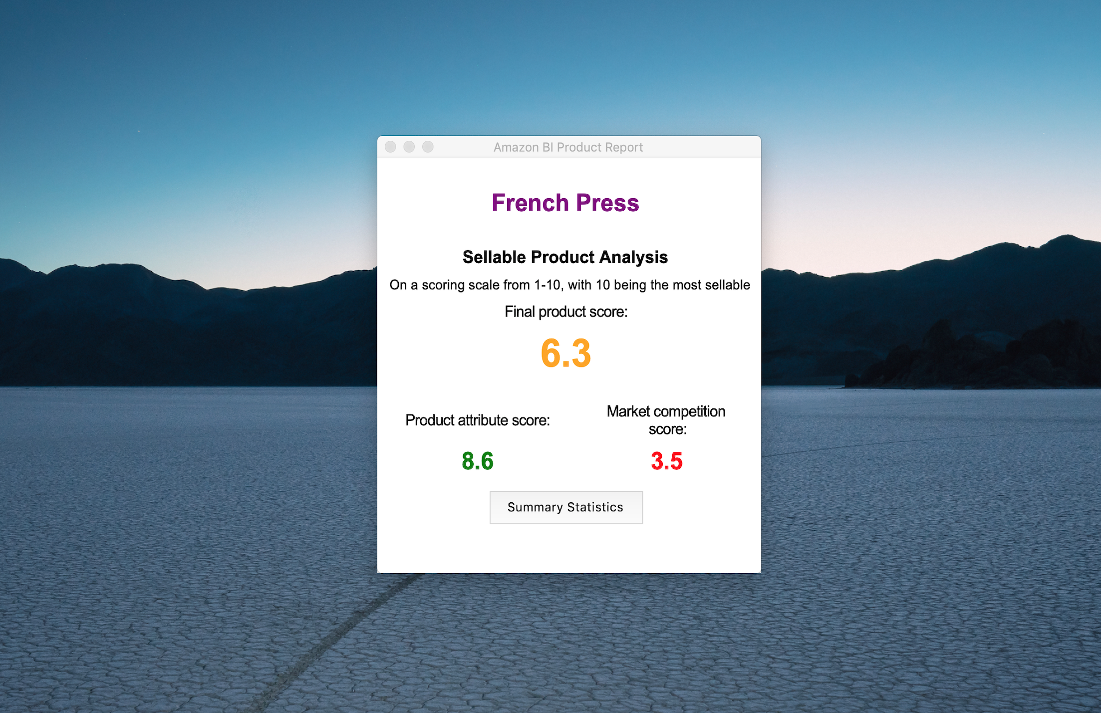 A tool that uses scraped Amazon product data to recommend whether a product is sellable or not.